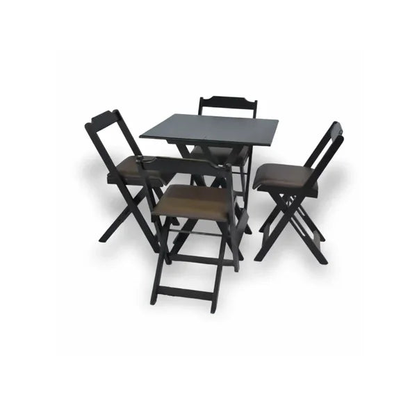 Conjunto Mesa Plegable 70x70 con 4 Sillas Acolchonadas – Marrom